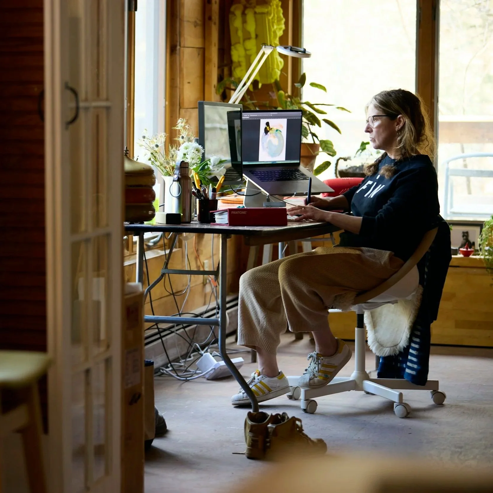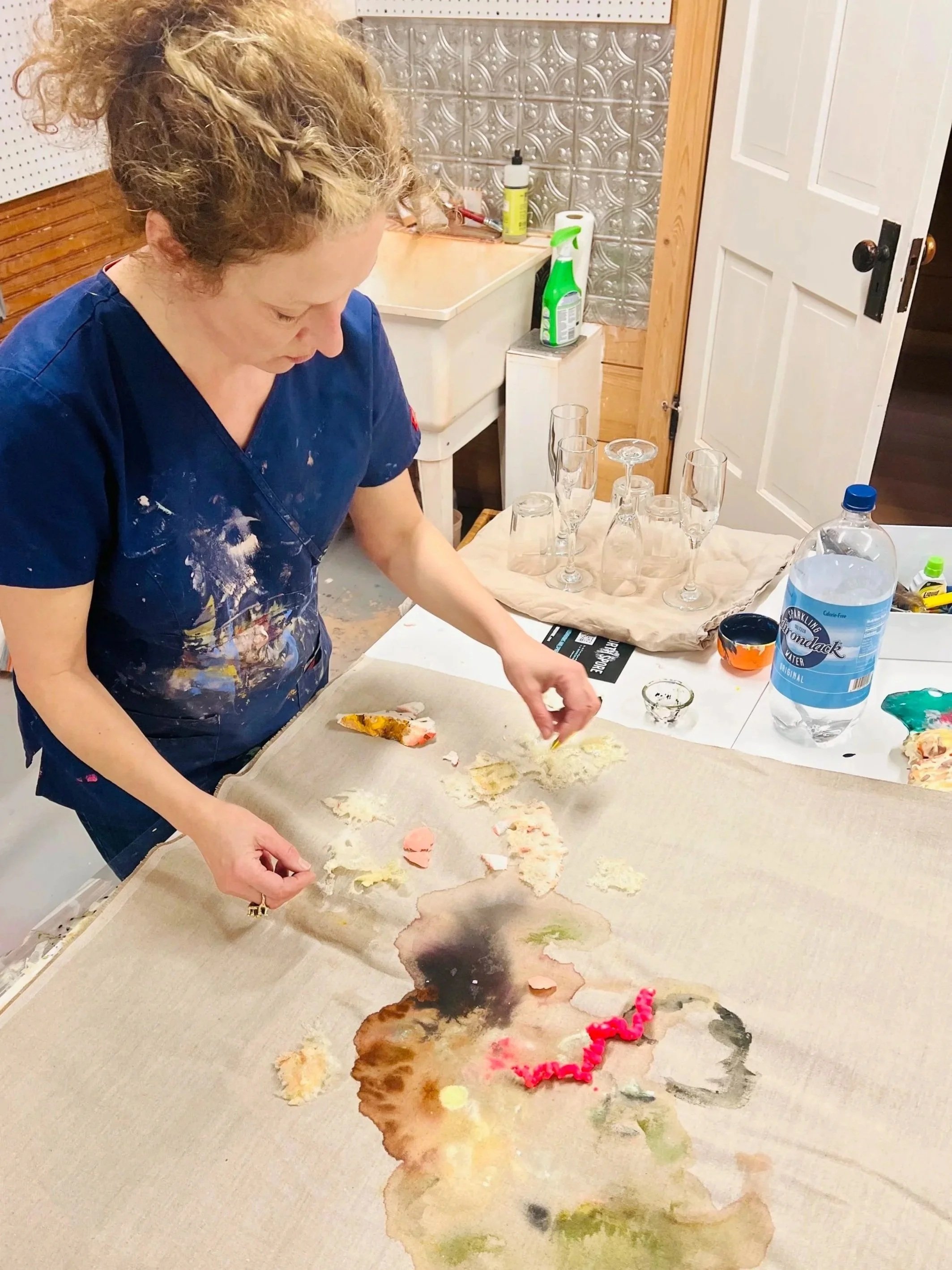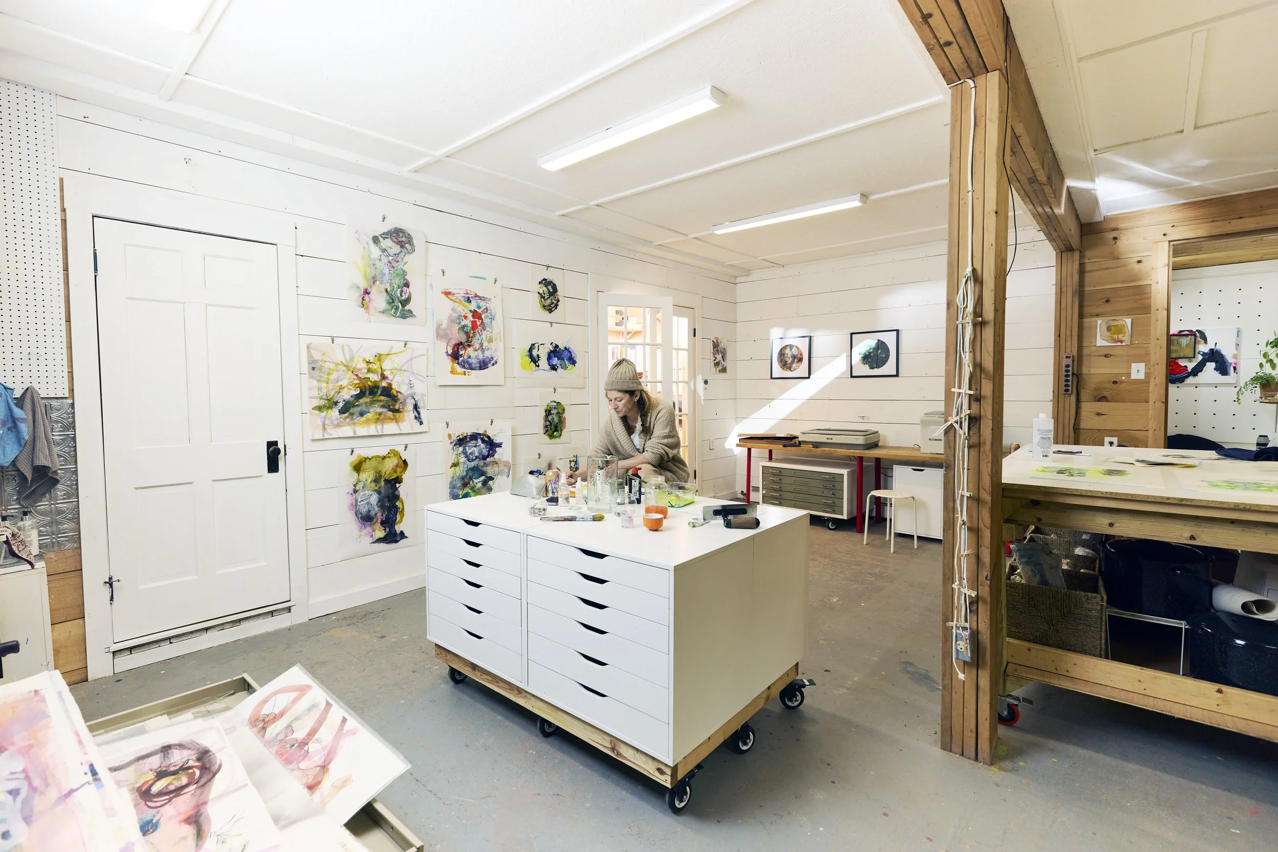 Chesters operates first as a working studio, where fine art and design practices inform one another. The space also serves as a curated gallery, presenting Catherine’s work alongside exhibitions featuring artists from Sullivan County and the surrounding upstate New York region.